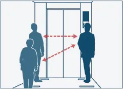 Giữ khoảng cách an toàn ở sảnh chờ và trong thang máy.